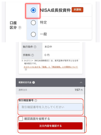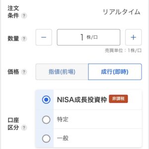 注文画面で、「NISA(成長投資枠)」を選択します✅