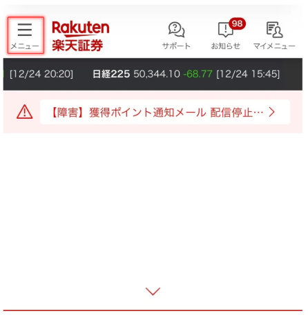 ログイン後、画面右上の三本線(メニュー)をタップします👆