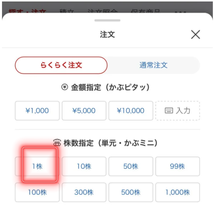通常の株式投資では、100株単位での購入が基本なんだけど、