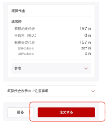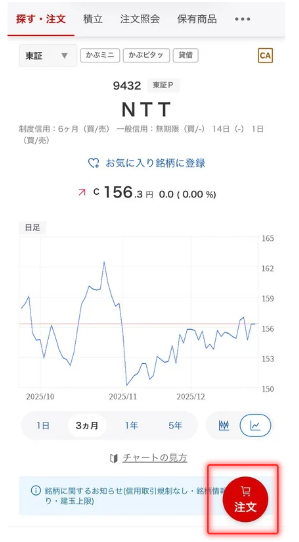 NTTの画面が表示されたら、画面右下にある赤い「注文」ボタンをタップします👆
